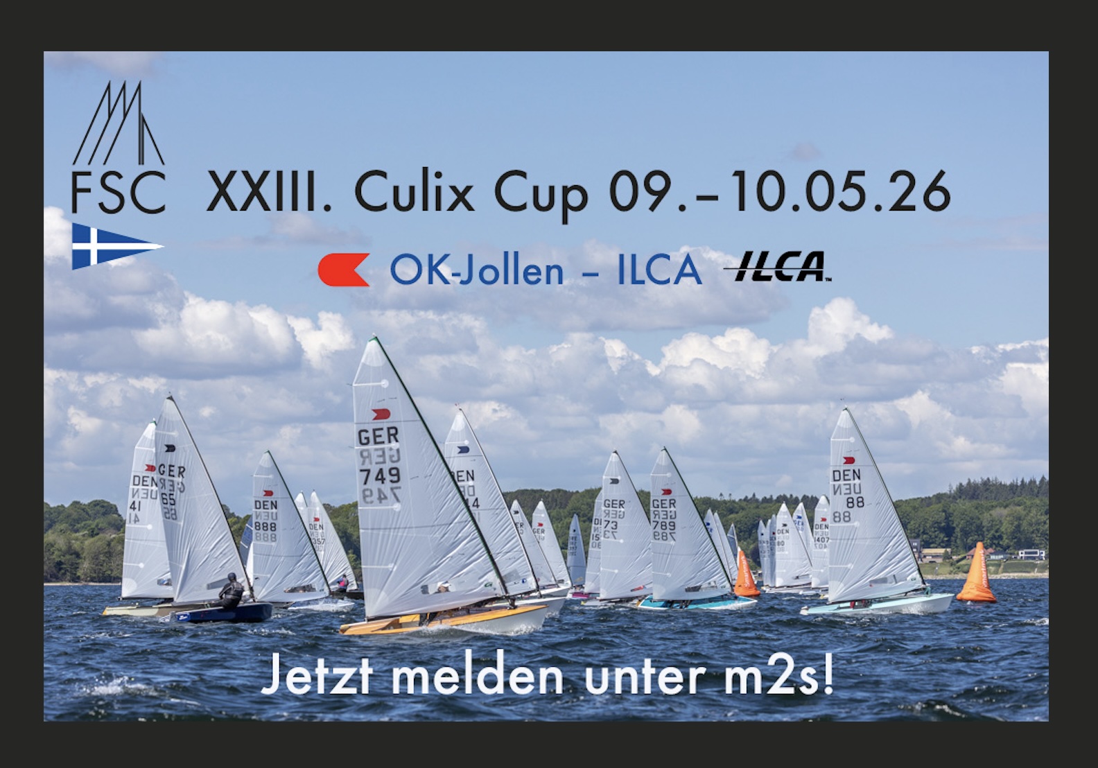 Die Regatta um den Culix-Cup beim Flensburger Segel Club wird immer mehr zu einem Frühjahrs-Klassiker. Im letzten Jahr trafen sich Anfang Mai mehr als 50! OK-Jollen aus Dänemark und Deutschland um auf einem der schönsten Segelreviere Deutschlands um die Wette zu segeln. Aber nicht nur die wunderbare Flensburger Förde lockt, sondern auch der lokale Flottenchef Lutz Boguhn, der unermüdlich Werbung macht und mit großem Einsatz dafür sorgt, dass sich alle wohlfühlen.