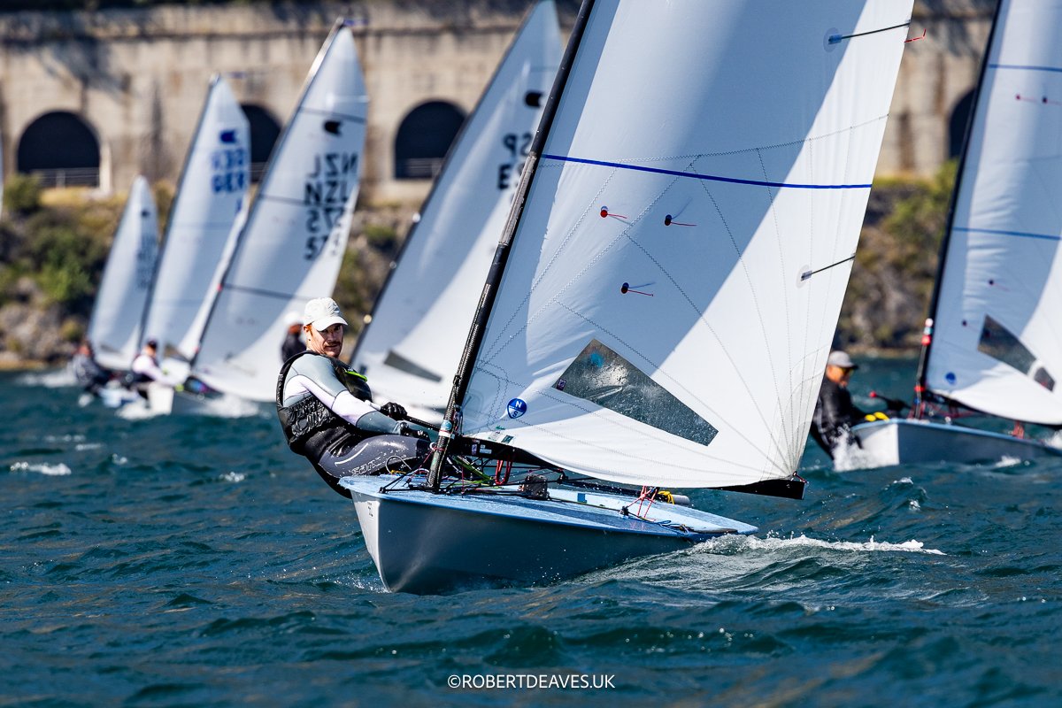 Zuerst liegt die Linie auch immer noch links bevorteilt aber als ich 3 Minuten vor dem Start nochmal ein paar Meter am Wind fahre, dreht der Wind 10° Rechts. Ich schau hoch zum Startschiff, alles frei da oben. Ich entschließe mich das Risiko einzugehen, auch wenn alle Top Leute ganz unten am Fass sind. 10 Sekunden nach dem Start kann ich wenden und liege als leewärtigstes Schiff ganz leicht voraus mit dem Bug. Jetzt aber, Traveller raus, Schot ein bisschen auf. Die Sicherung klingt aus und der Tasmanische Teufel in meinem Kopf bricht aus. Für Minuten bekomme ich nichts mehr um mich herum mit. Als ich das nächste Mal hochschaue, sind sie alle weg. Nur noch Andy Davis ist mit etwas Querabstand in meiner Nähe, liegt aber 50m zurück. Mir ist sofort klar, die sehen mich nicht wieder. Jetzt noch die Layline halbwegs treffen und nach einem guten ersten Vorwind kann nichts mehr schief gehen. Für mich ist das ein Wahnsinns Gefühl vor so einem Feld her zu fahren und mit einem sicheren Vorsprung kann ich mein erstes WM Rennen gewinnen.