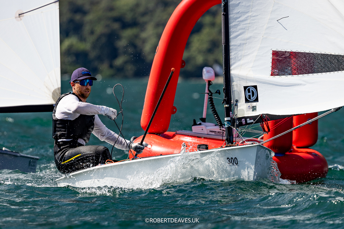 Die Wut löst wohl wieder den Sicherungsschalter für die Käfigtür meines Tasmanischen Teufels aus und als ich mich das nächste Mal umschaue, ist der letzte Vorwind schon fast vorbei und ich bin Zweiter. Mit wieder eingelegter Sicherung bekommt mich Charly fast noch, aber ich kann gerade so die Innenüberlappung noch auflösen und auf dem letzten Raumgang meinen Bug vorne behalten. In der Summe mein bester Tag bis jetzt und ich mache mir leichte Hoffnung in der Gesamtwertung noch ein bisschen nach vorne geklettert zu sein aber alle um mich herum sind ähnlich gefahren. Ulli hat mit 2 und 3 den besten Tag der ganzen Serie hingelegt, André ist auch exakt 5 und 2 gefahren und auch auf Baabi oder Bo ist kein Punkt aufzuholen. Ganz vorne werden weiter in Serie die Tagessiege rausgehauen und Andrew und Nick sind in einer völlig anderen Liga unterwegs. Auch die Konstanz von Niklas Edler, Charly Cumbley oder Matt Howard ist für mich unerreichbar. Aber ich gehe auf einem Top 10 Platz in die Finalserie. Morgen wird groß gewürfelt denke ich mir noch, da geht noch was.