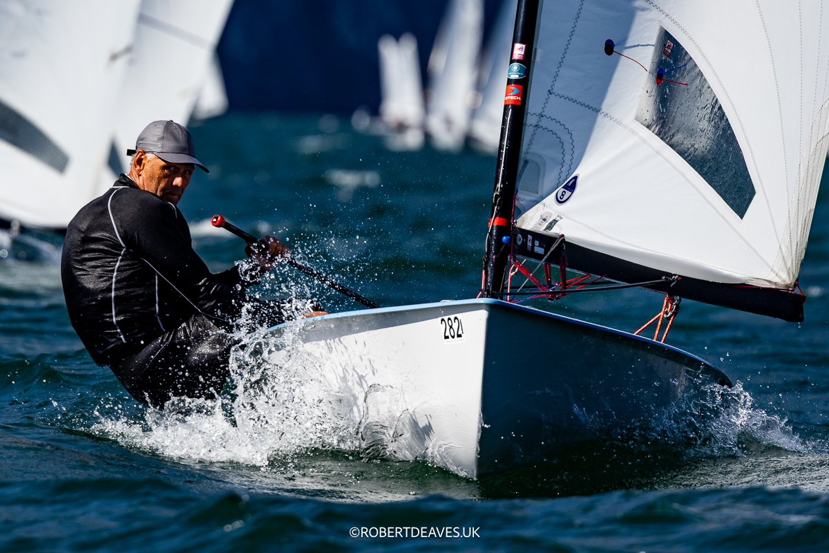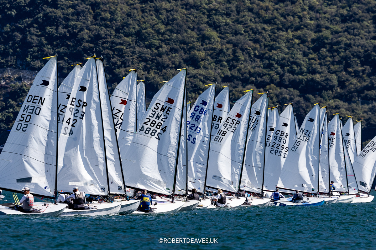 Der Nordwind steht lange durch, gefolgt von einer langen Flaute. Irgendwann kräuselt sich das Wasser aus Süden und mit reichlich Verspätung bietet die Regatta noch mal großes Drama. Natürlich braucht es noch unbedingt ein Leichtwindrennen zum Abschluss. Die Linie liegt klar links bevorteilt und wenn man hochschaut, ist in der Seemitte auch mehr Wind. Die ersten beiden Startanläufe der Goldfleet sind klare Massenfrühstarts mit Gesamtrückruf. Das ganze Feld will ganz in Lee über die Linie und ich breche schon 30 Sekunden vorher den Startanlauf ab und zieh zurück.